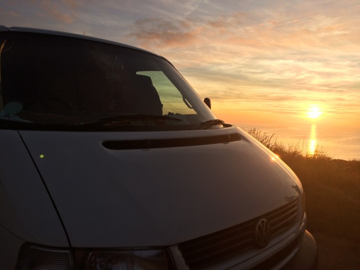 How could I forget a term of nights spent watching sunsets from the comfort of my van? Having been scared out of my valley retreat, I made for the cliffs and have enjoyed every sunset since. Pulling up shortly before sundown, I slide the side door open and lounge, book in hand, watching the summer’s light disappear leaving a haze of peach and burnt tangerine behind.